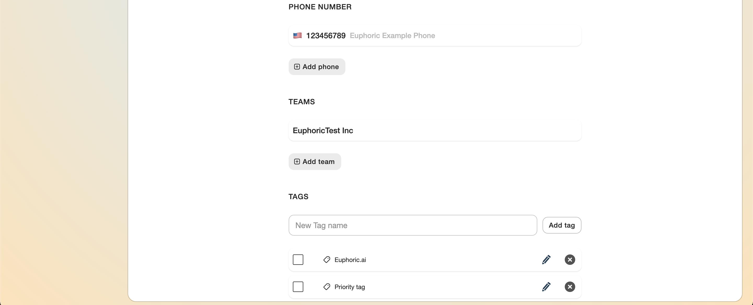 Users with leader access to the Team can edit phone numbers for receiving and making customer calls.