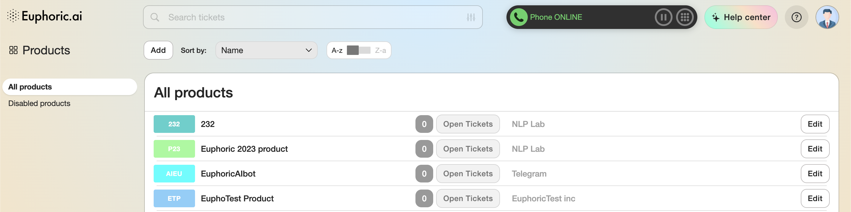 You can also create a new product by pressing the Add button under the Euphoric search field.