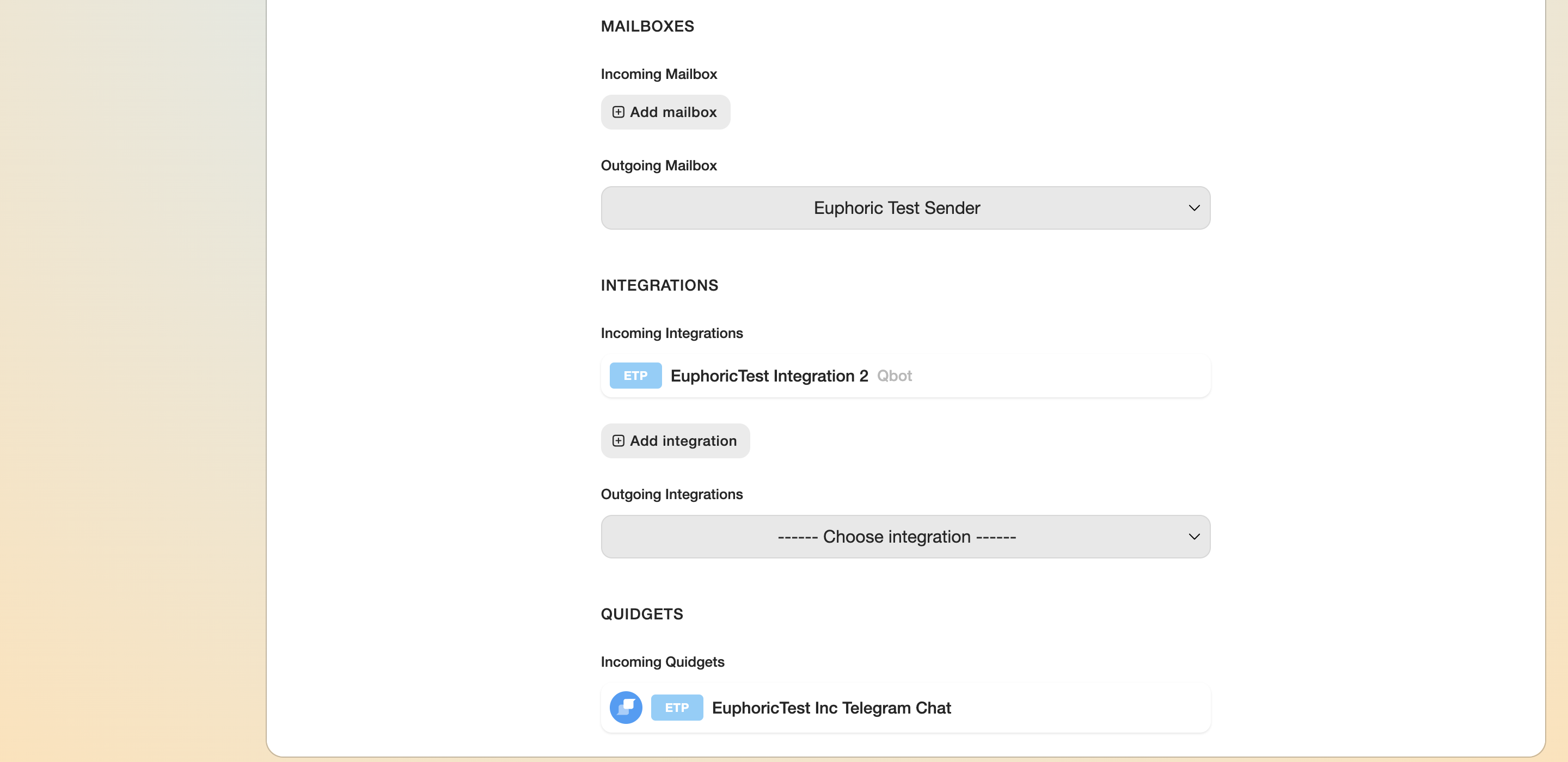 3.2. Outgoing integrations. Selecting an outgoing user connection channel.